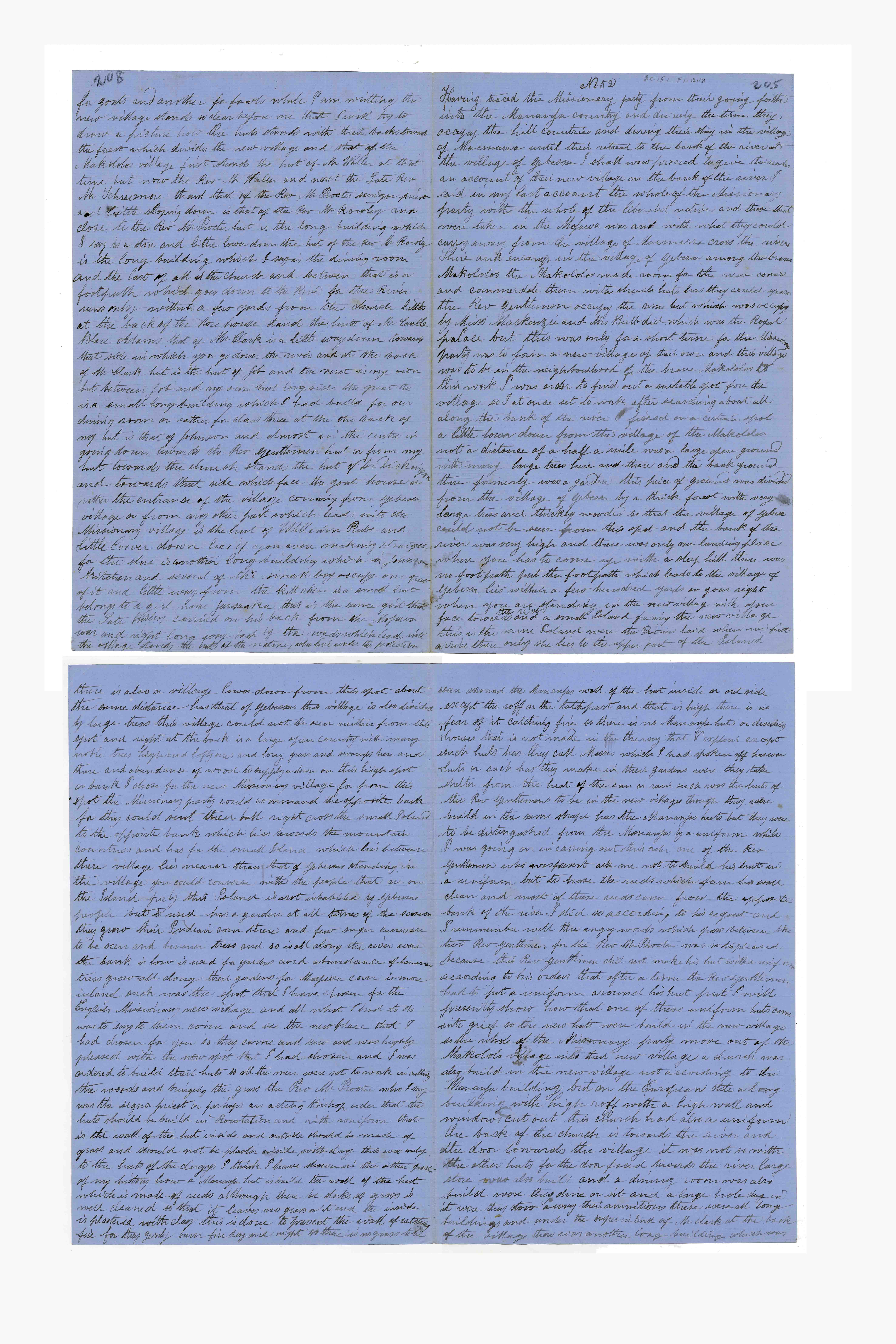 Sheet No. 52 of 'A Negro's History of Bishop Mackenzie's Mission to Central Africa' (MS), partly corrected by WHI Bleek. The Universities' Mission to Central Africa (UMCA), led by Bishop Charles Mackenzie, operated in a region that crossed what are now the borders of Mozambique and Malawi (formerly Nyasaland). After Mackenzie's death (in 1862) and the failure of the Magomero mission, the UMCA relocated to other areas, including Zanzibar, where it became very successful.