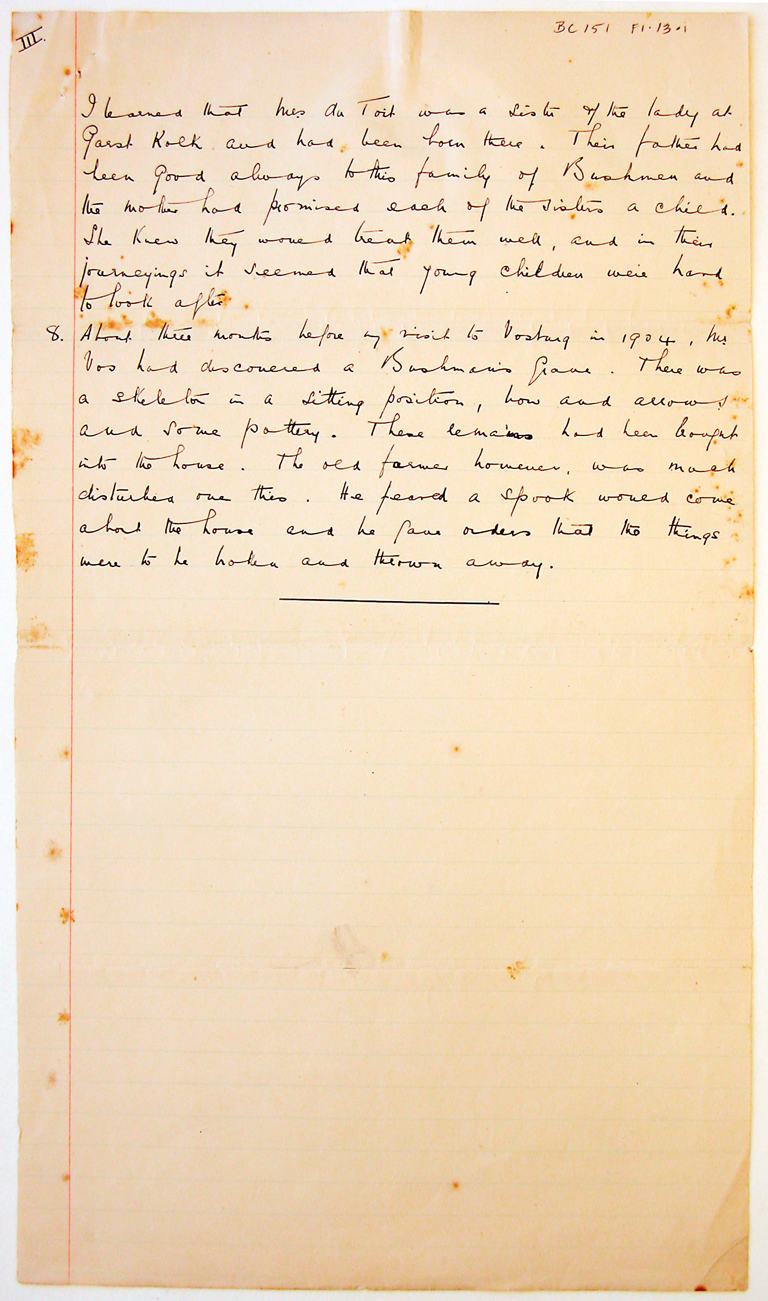 A series of anecdotes by white farmers from the Calvinia, Murraysburg, Victoria West, and Vosburg districts entitled '[']Bushman' Notes' (MS). These are copies.
