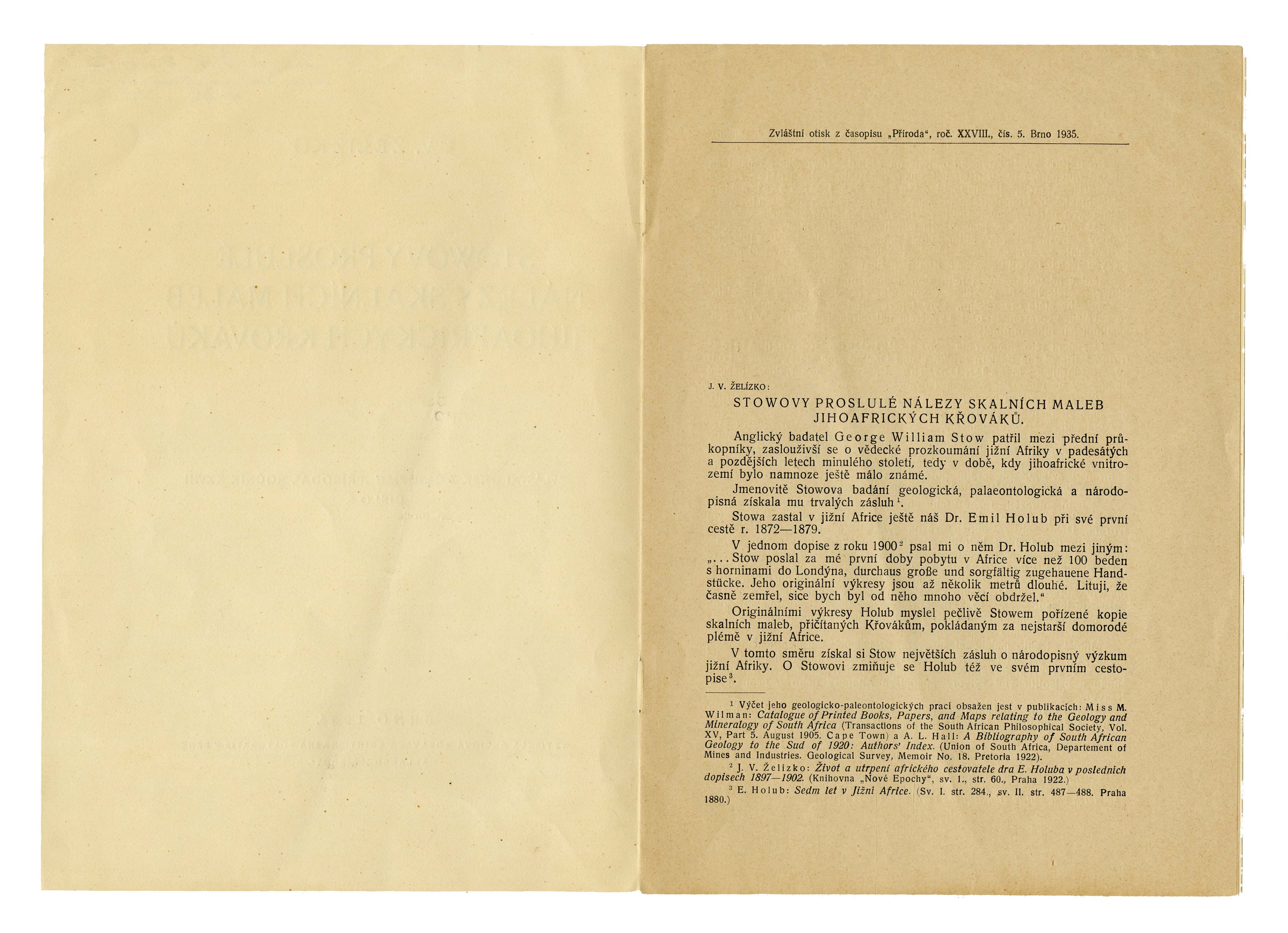 JV Želízko, George William Stow (a Czech-language article about), Brno (place of publication), rock art copyist (George Stow was a notable), The native races of South Africa (by GW Stow [posthumous] and GM Theal), George McCall Theal, Rock-paintings in South Africa (GW Stow [posthumous] and DF Bleek's), South Africa's Past in Stone, MC Burkitt