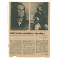 Article about the 'First Bushman Dictionary in the world' by Ms Dorothea Bleek, 'a task that took 100 years', in 'Fleur', December 1947.