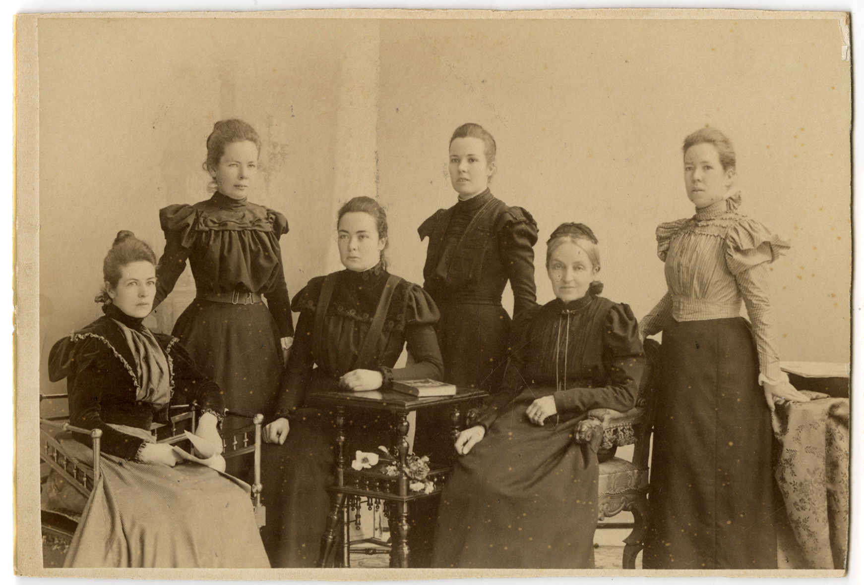 L. to R.: May (seated), Helma, Margie (seated), Doris, Jemima (seated), Edith. On the back is written in pencil: Mother, Edith, May, Margie, Doris, Helma 1899. Helma was 24 by this time, Doris 26, Margie 28, May was 30 and Edith 36. Jemima herself was 62.2