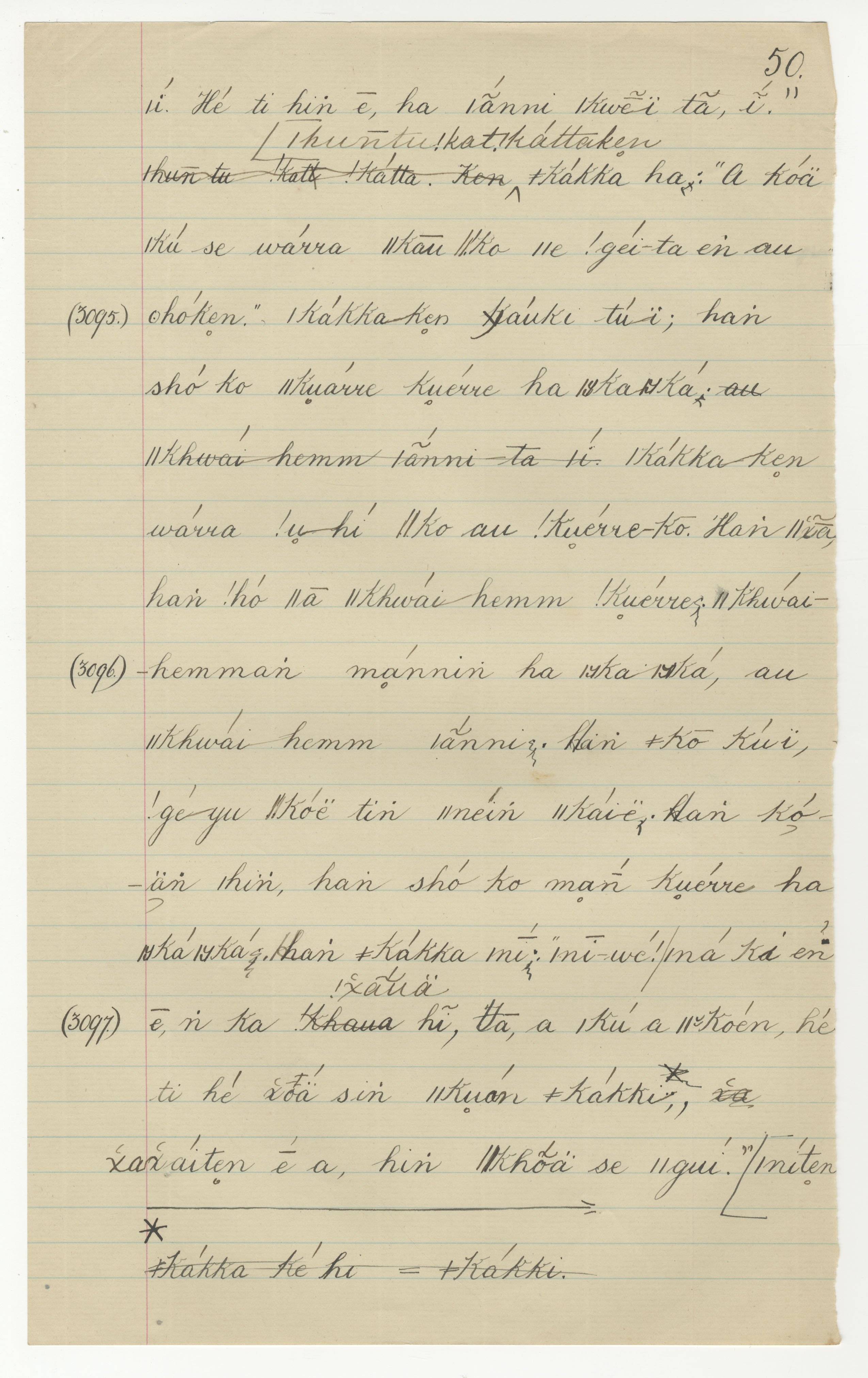 Manuscript page taken from ǁkabbo's story, The Mantis takes away the Tick's sheep (including Porcupine's speech concerning the coming of ǁkhwai-hemm) -- in Lloyd notebook 34 (dated 1873), pages (continuing from) 3094 to 3097.