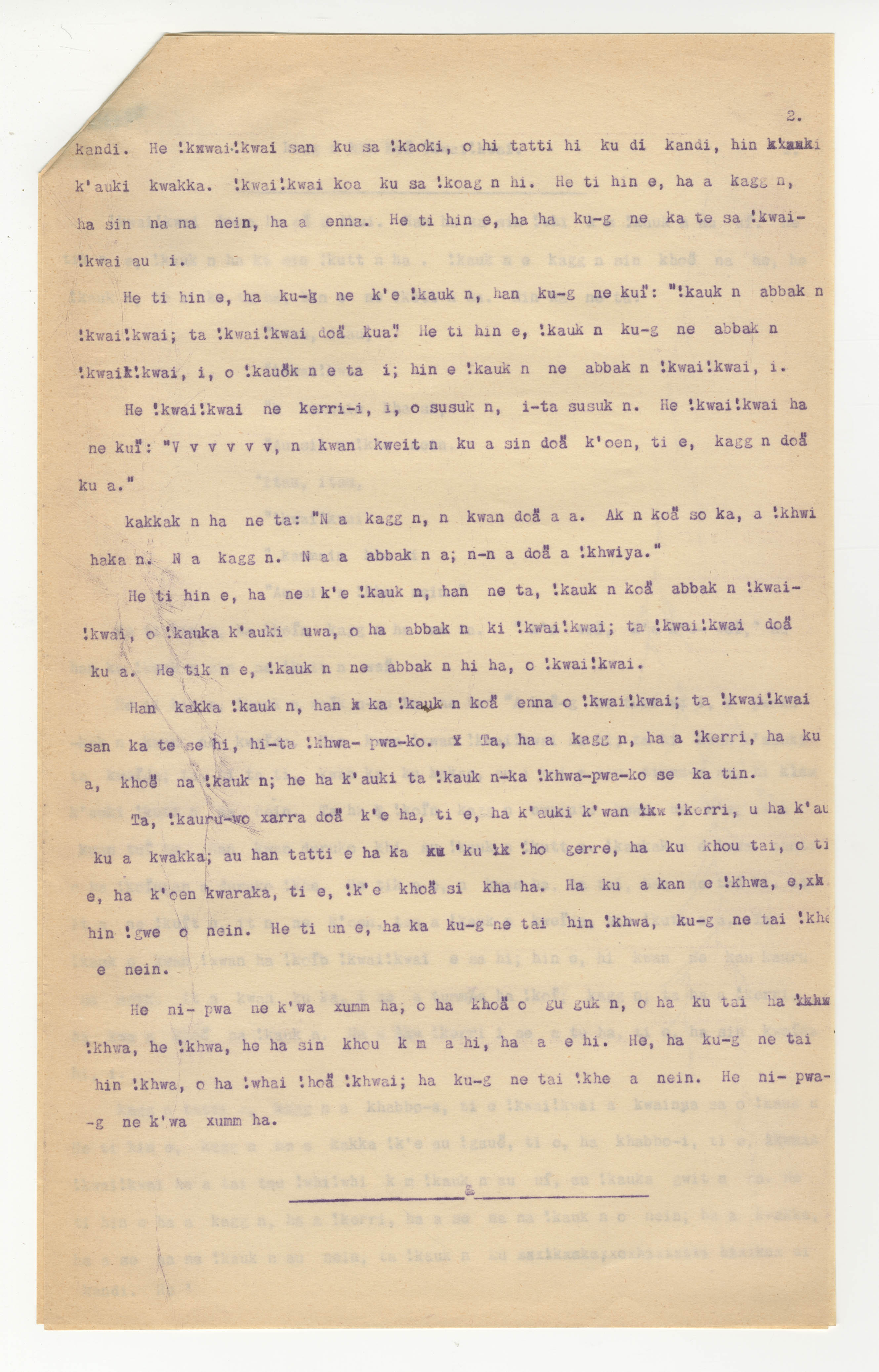 Manuscript page 2, taken from |han≠kass'o's story, The !kwai !kwai, the Mantis and the children -- in Lloyd notebook 3 (dated 1878 [started]).