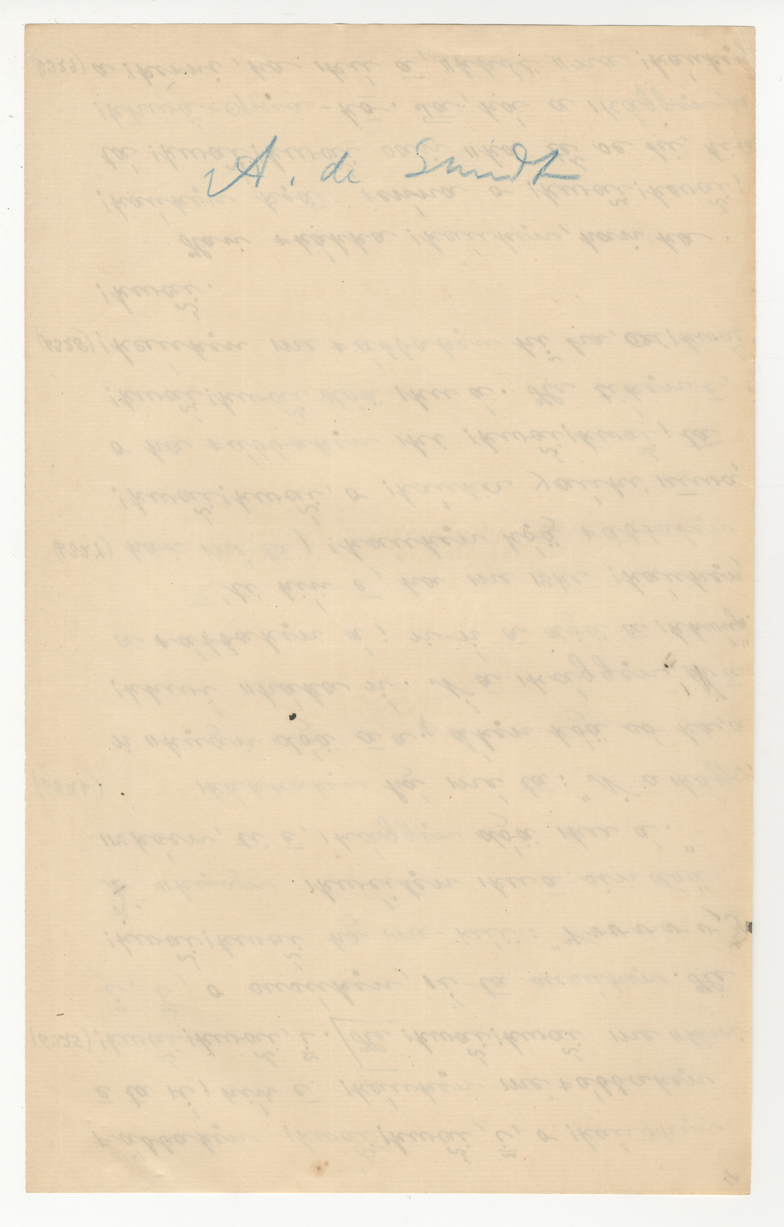 The reverse of page 4, with the name 'A. de Smidt' written at the top of the sheet in blue coloured pencil.