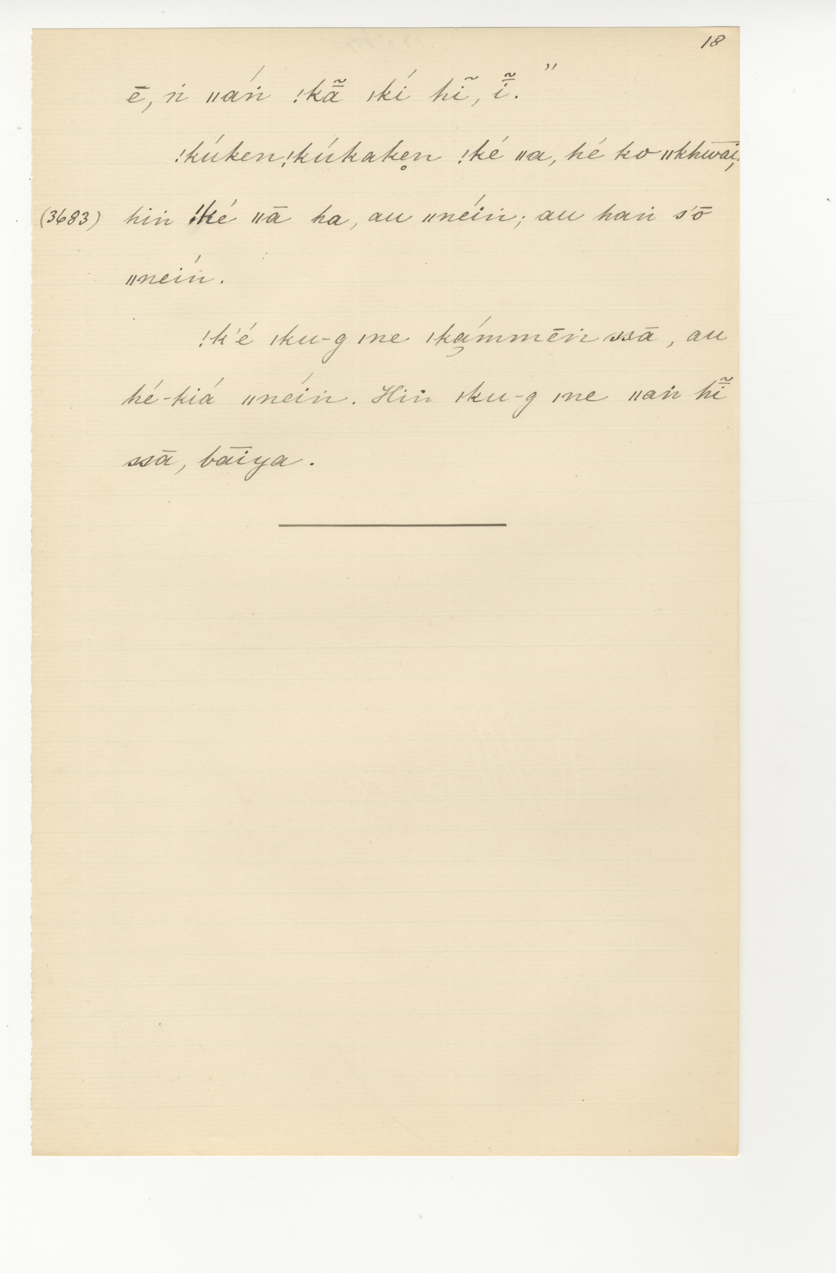 Manuscript page taken from Dia!kwain's story, How the Ichneumon discovered what the Mantis did with his honey -- in Lloyd notebook 4 (dated 1873 to 1874), pages (continuing from) 3682 to 3683.
