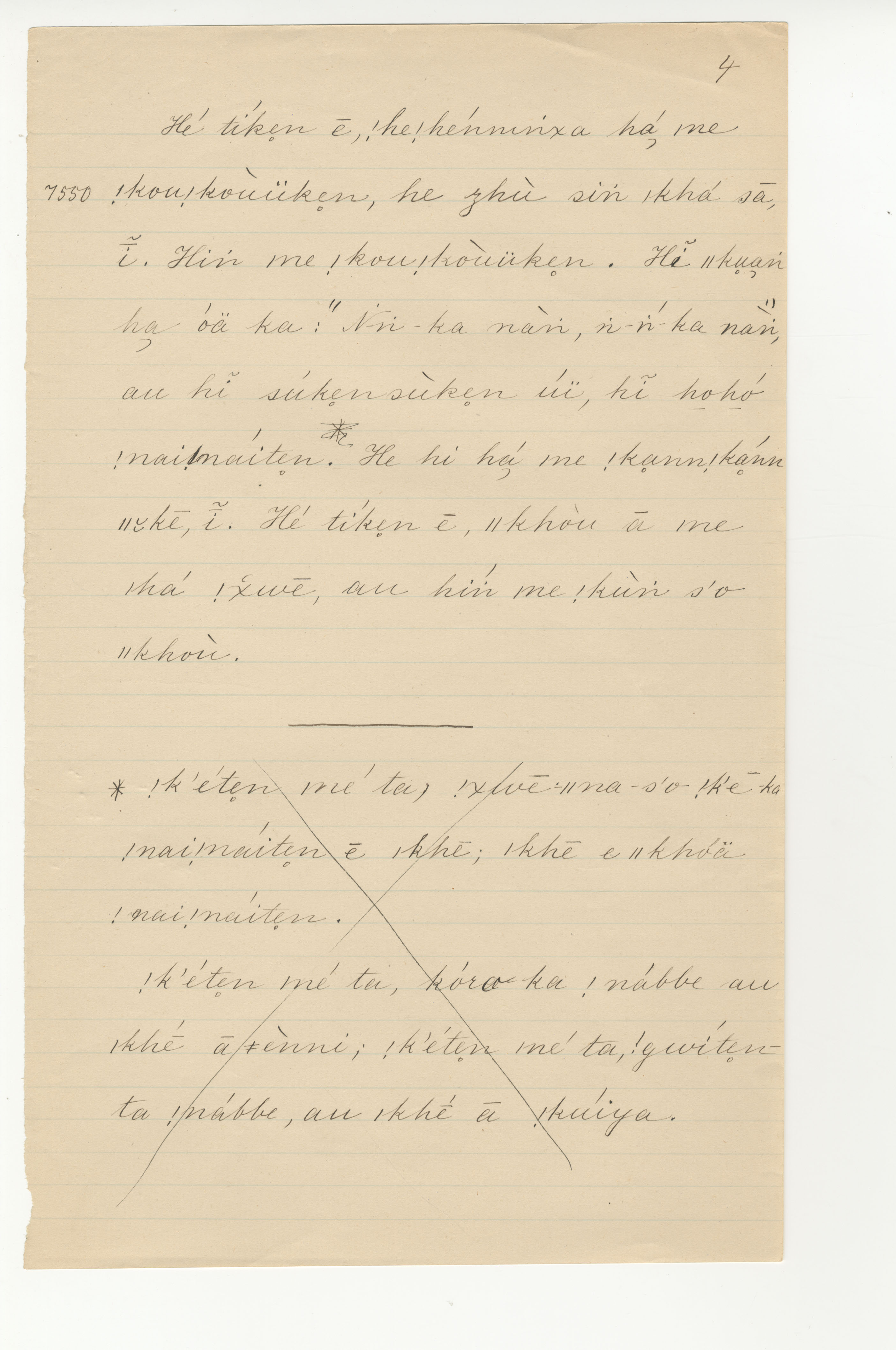 Manuscript page taken from |han≠kass'o's story, The Mantis, the Mice and the Beetle -- in Lloyd notebook 18, pages 7549 to 7550