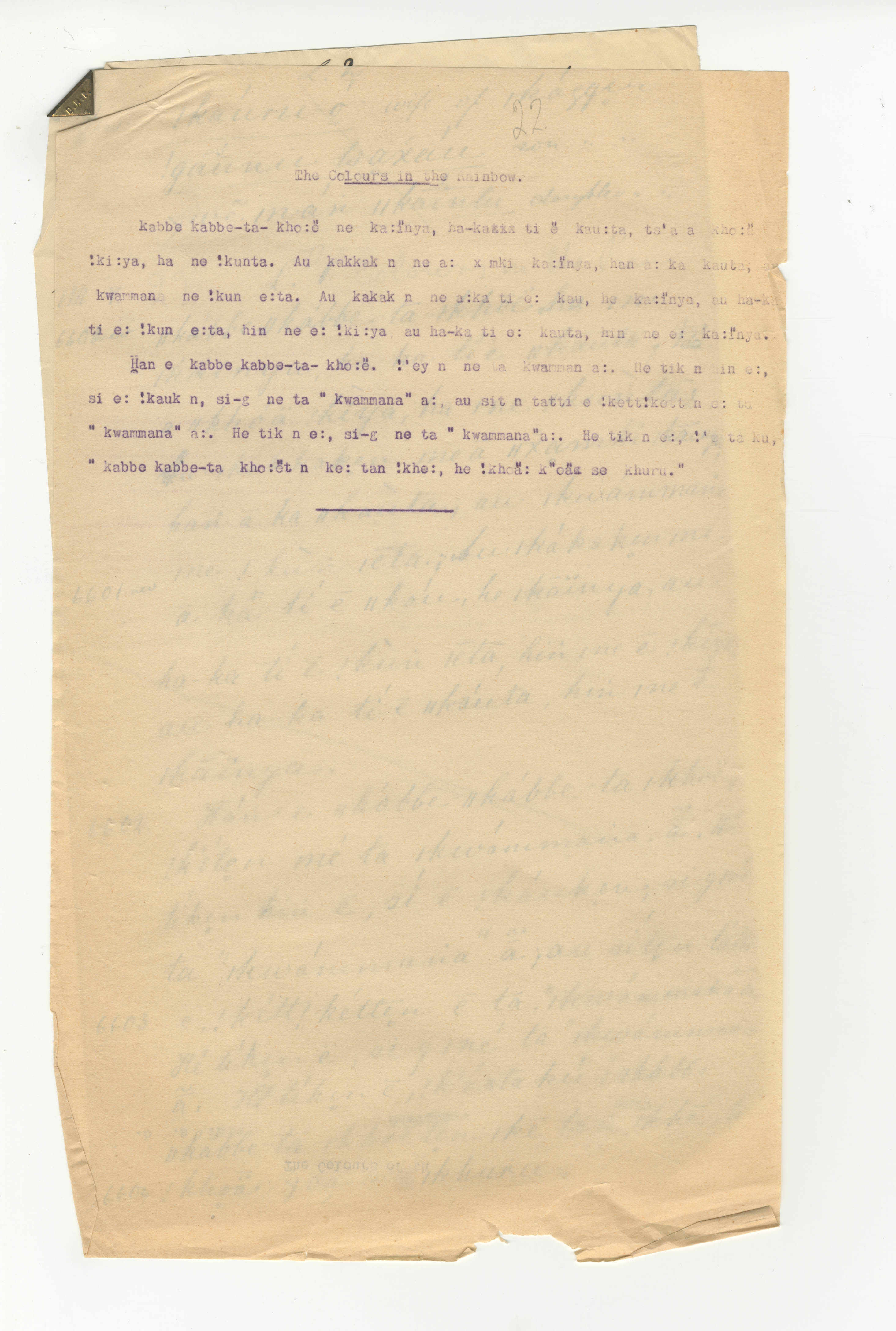 The Mantis and his friends (manuscripts and typescripts for), |xam folklore, Dorothea Francis Bleek, T Maskew Miller