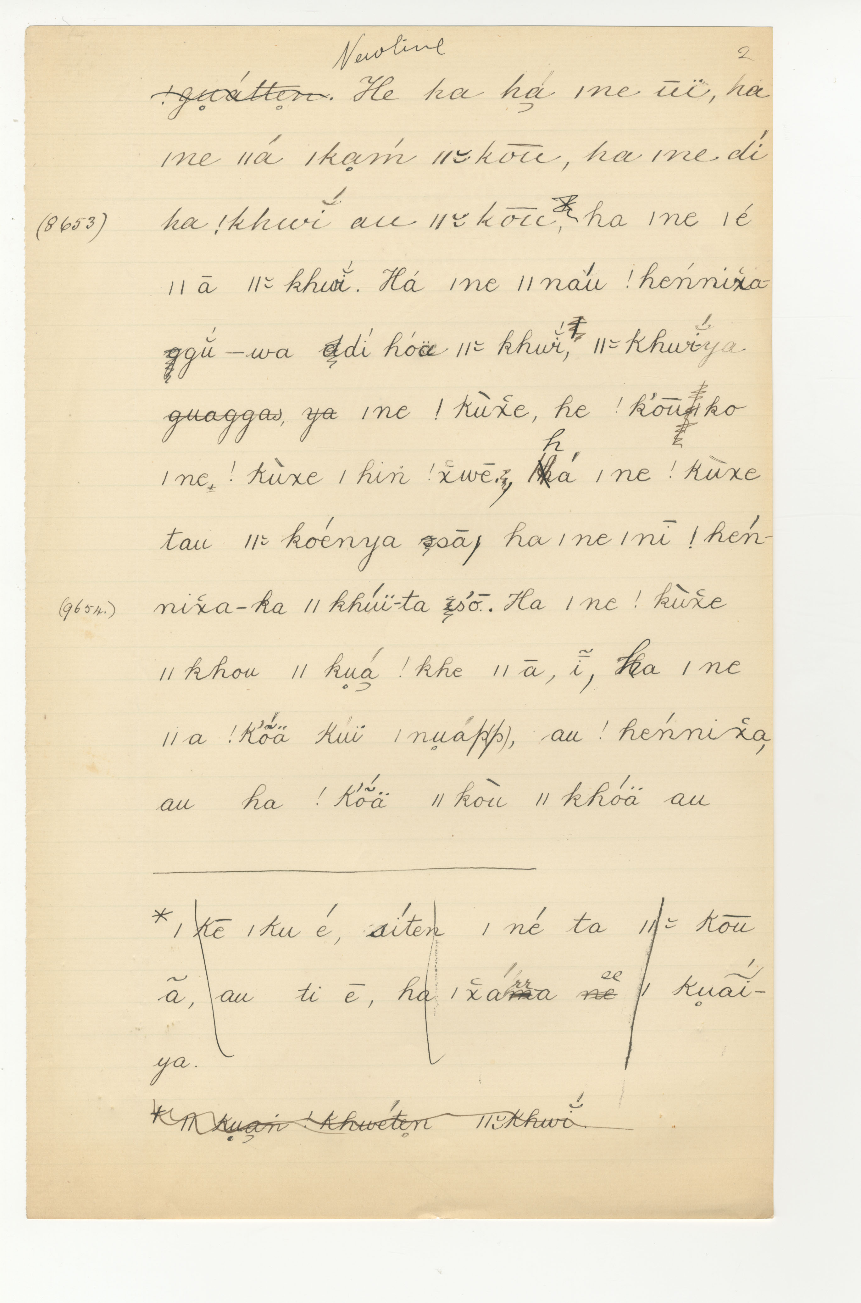 Manuscript page taken from |han≠kass'o's story, The Wildebeest, the Mice, the Quaggas and the Mantis, or why the (black) Wildebeest has a white or light coloured tail -- in Lloyd notebook 30 (dated 1879 [started]), pages (continuing from) 8652 to 8654 (written as '9654' [which does not exist]).
