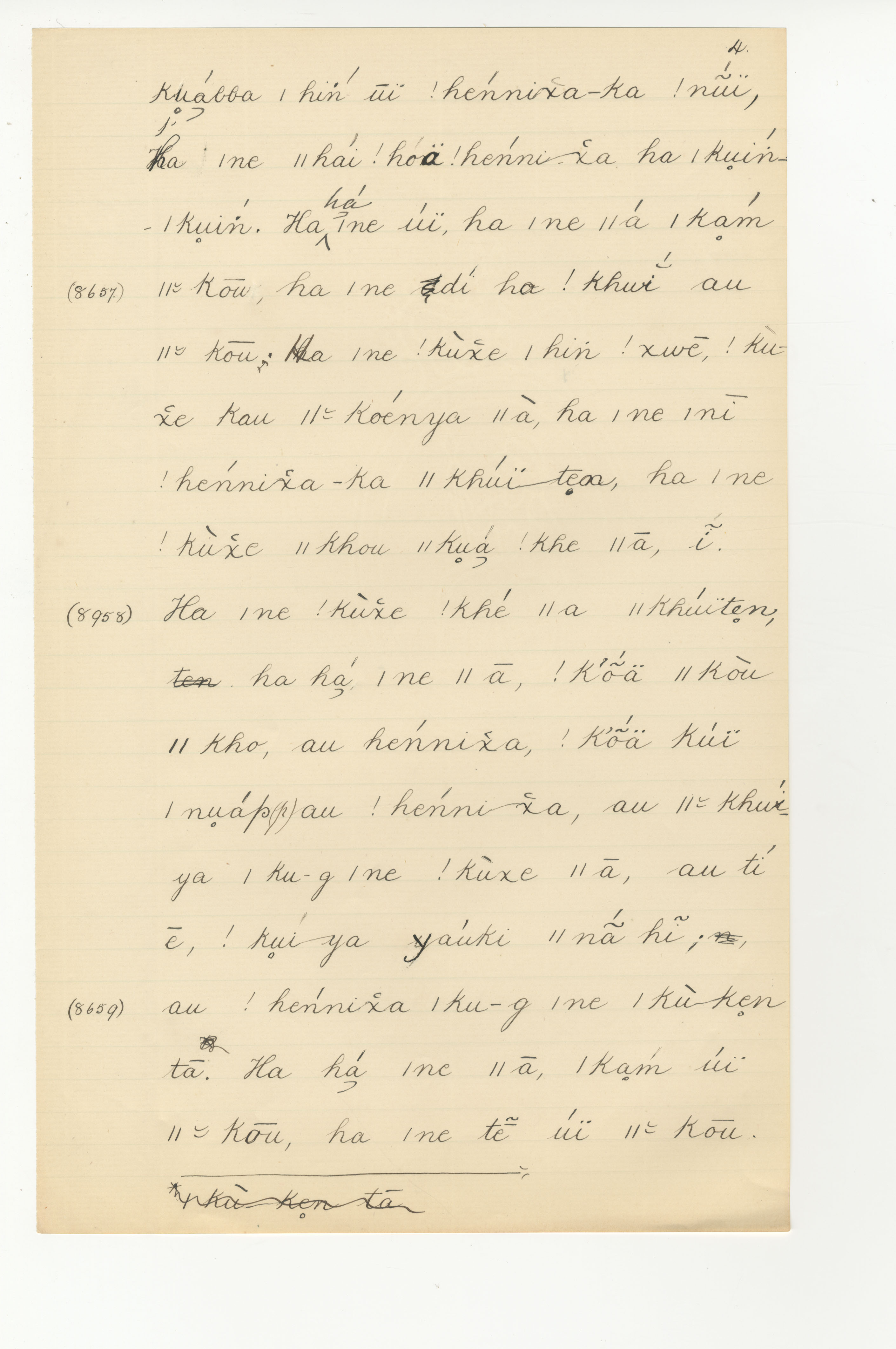 Manuscript page taken from |han≠kass'o's story, The Wildebeest, the Mice, the Quaggas and the Mantis, or why the (black) Wildebeest has a white or light coloured tail -- in Lloyd notebook 30 (dated 1879 [started]), pages (continuing from) 8656 to 8659.