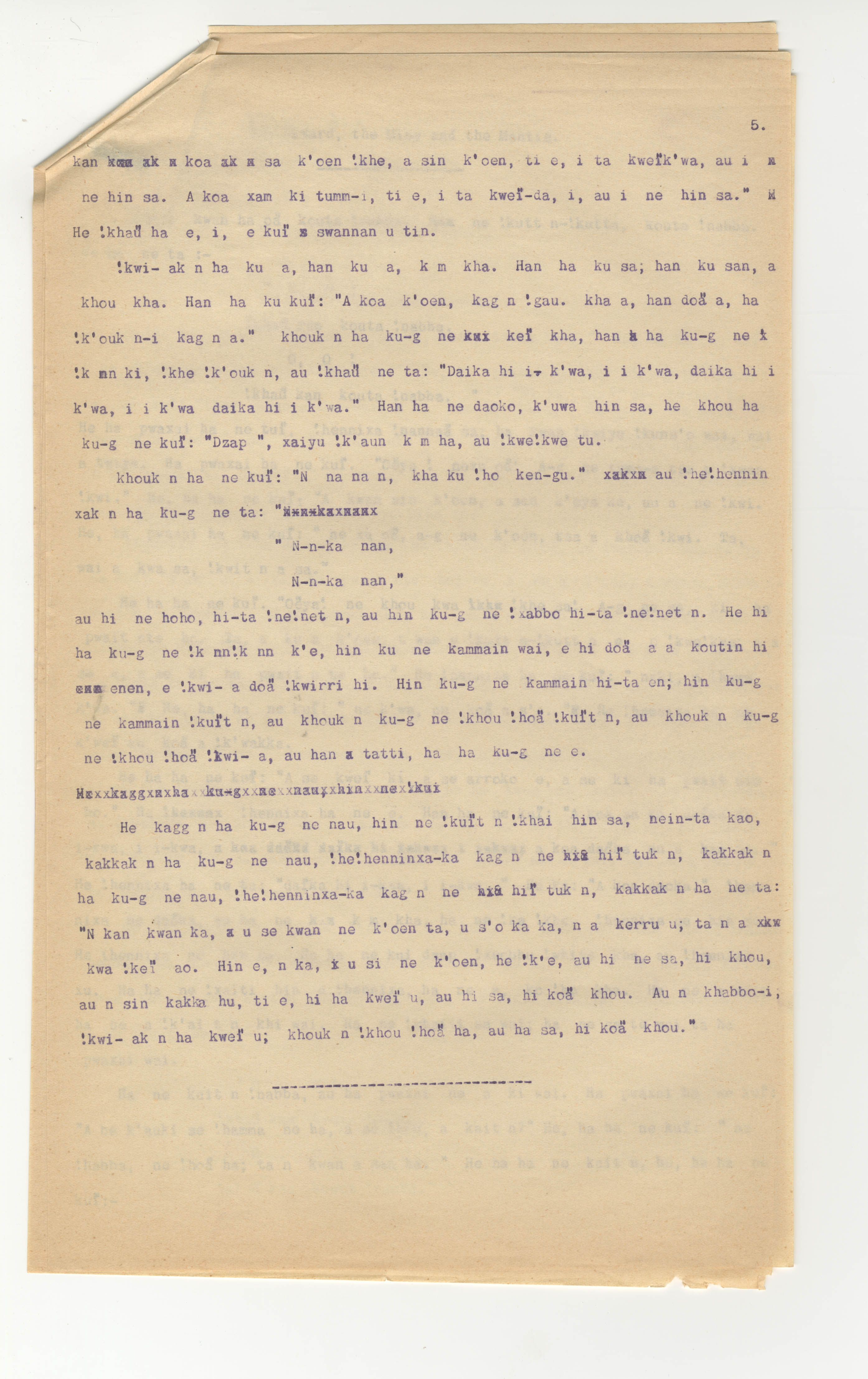 Manuscript page taken from |han≠kass'o's story, The Lizard, the Mice and the Mantis (includes the song of the Agama lizard) -- in Lloyd notebook 30 (dated 1879 [started]), pages 8671 to 8736.