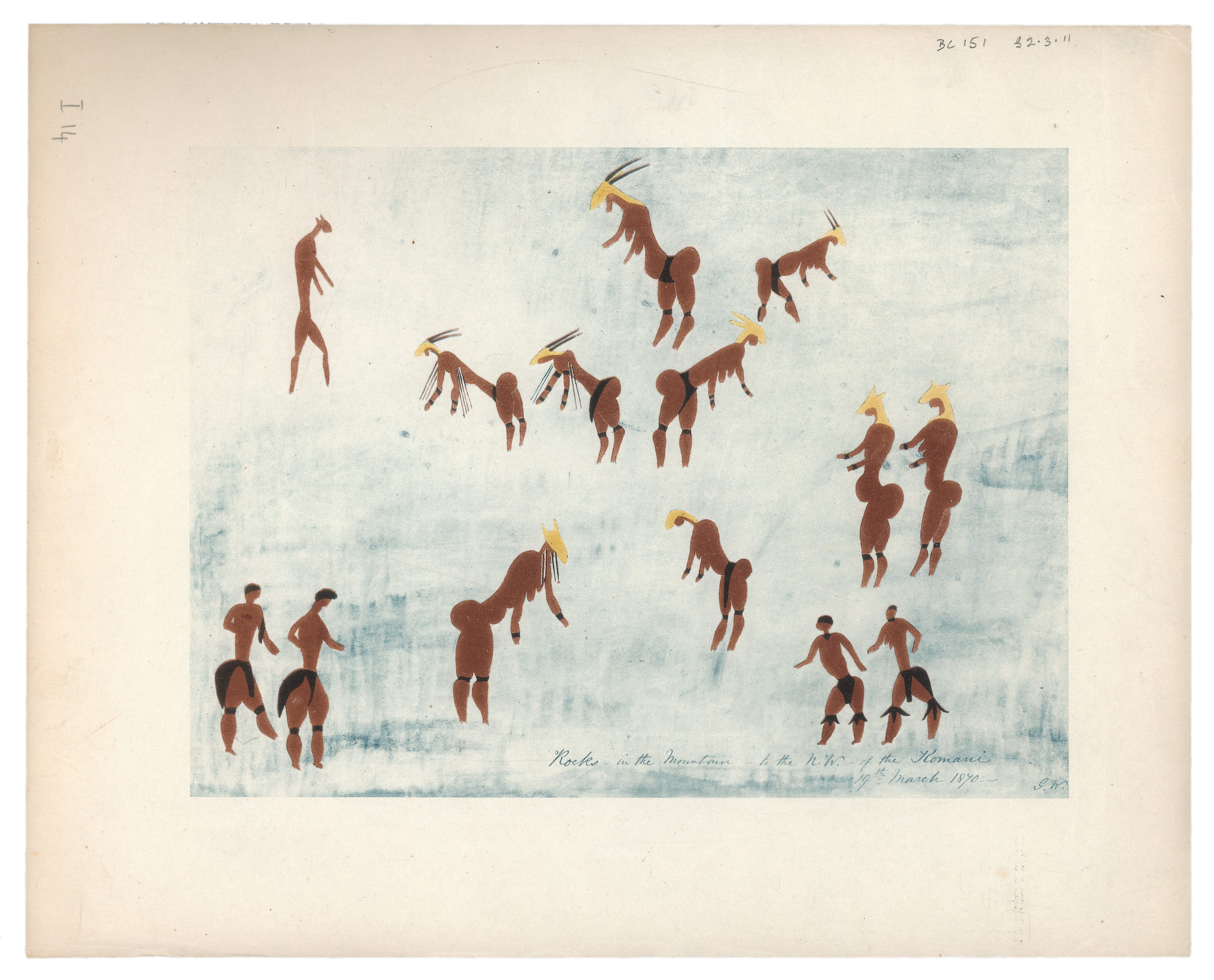 Plate proofs of illustrations for George W Stow (posthumous) and Dorothea F Bleek's 'Rock-paintings in South Africa...' (1930) by Methuen & Co. Ltd. (I14).