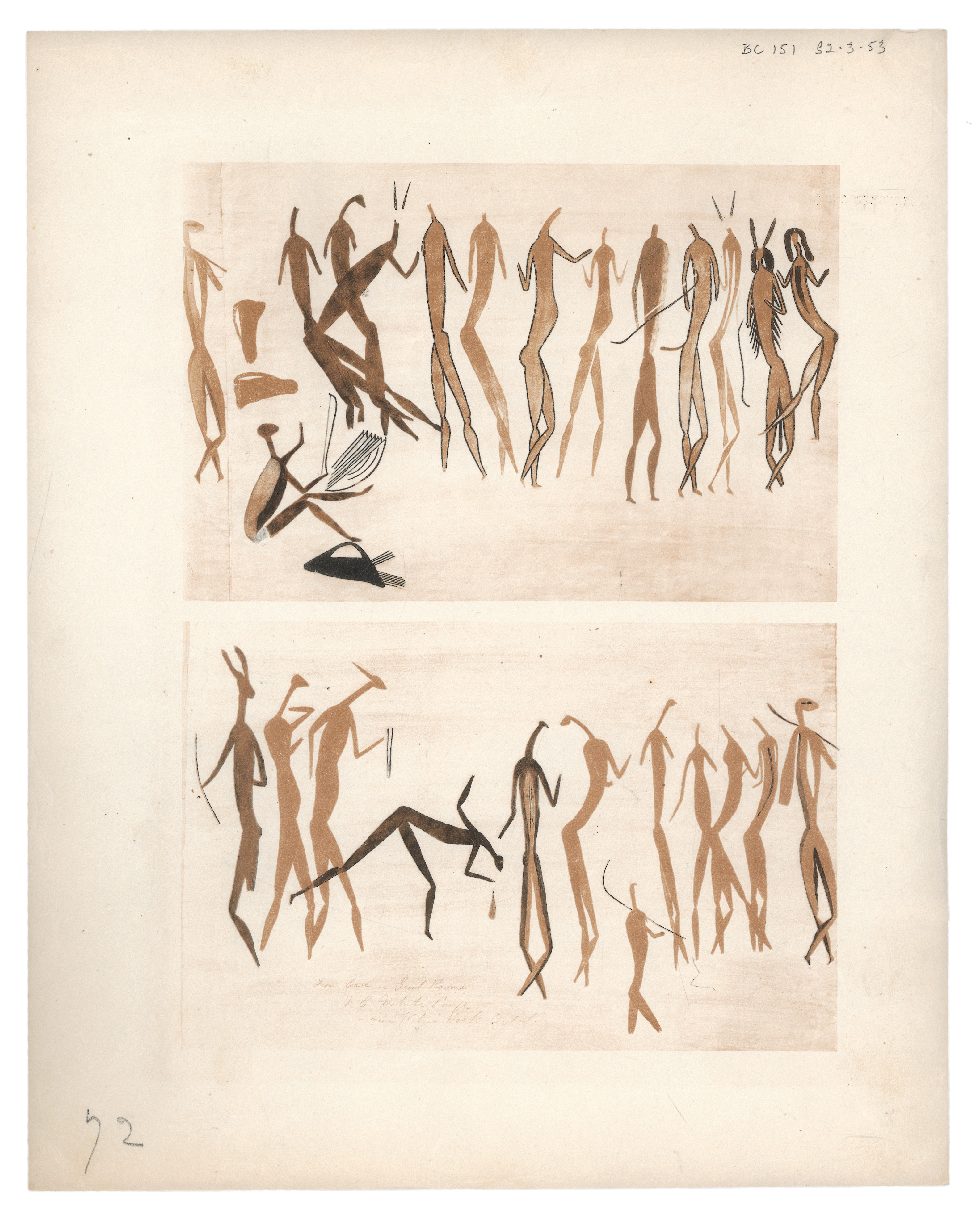 Plate proofs of illustrations for George W Stow (posthumous) and Dorothea F Bleek's 'Rock-paintings in South Africa...' (1930) by Methuen & Co. Ltd. (72).